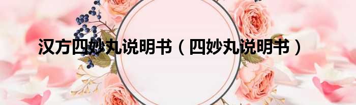 大家好,今天小六子来为大家解答以下的问题,关于汉方四妙丸说明书,四妙丸说明书这个很多人还不知道,现在让我们一起来看看吧!