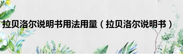 拉贝洛尔说明书用法用量(拉贝洛尔说明书)