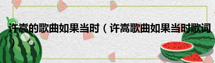 许嵩的歌曲如果当时(许嵩歌曲如果当时歌词)