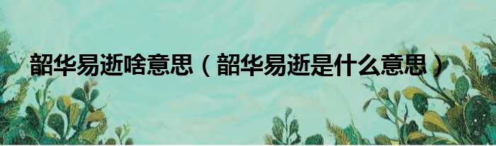 大家好,今天小六子来为大家解答以下的问题,关于韶华易逝啥意思,韶华易逝是什么意思这个很多人还不知道,现在让我们一起来看看吧!