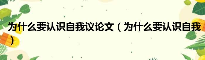 为什么要认识自我议论文(为什么要认识自我)