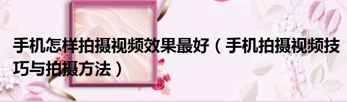 手机怎样拍摄视频效果最好(手机拍摄视频技巧与拍摄方法)