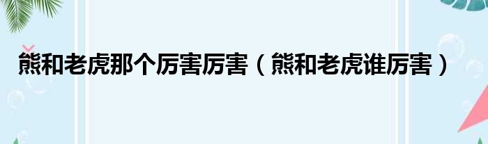 熊和老虎那个厉害厉害(熊和老虎谁厉害)