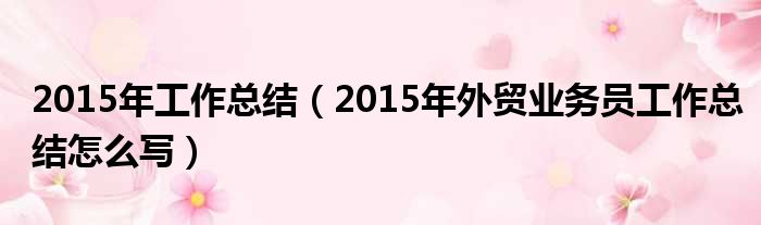 2015年工作总结(2015年外贸业务员工作总结怎么写)