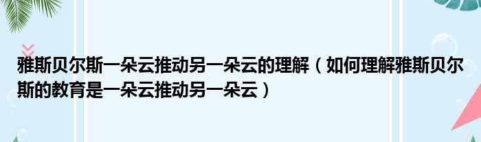 雅斯贝尔斯一朵云推动另一朵云的理解(如何理解雅斯贝尔斯的教育是一朵云推动另一朵云)