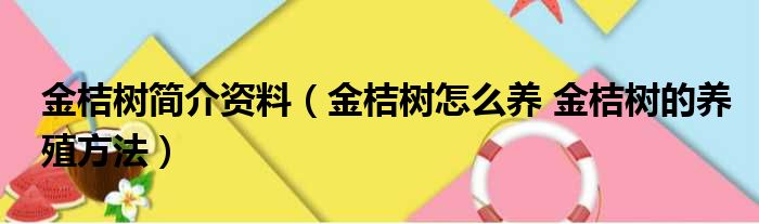 金桔树简介资料(金桔树怎么养 金桔树的养殖方法)