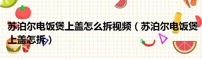 苏泊尔电饭煲上盖怎么拆视频(苏泊尔电饭煲上盖怎拆)