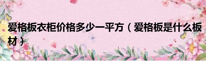 导读 大家好,今天小六子来为大家解答以下的问题,关于爱格板衣柜价格多少一平方,爱格板是什么板材这个很多人还不知道,现在让我们一起来看看吧