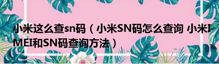 小米这么查sn码(小米SN码怎么查询 小米IMEI和SN码查询方法)