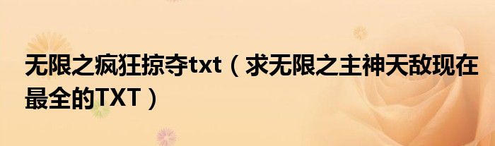 导读 大家好,今天小六子来为大家解答以下的问题,关于无限之疯狂掠夺txt,求无限之主神天敌现在最全的TXT这个很多人还不知道,现在让我们一起来