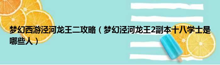 梦幻西游泾河龙王二攻略(梦幻泾河龙王2副本十八学士是哪些人)