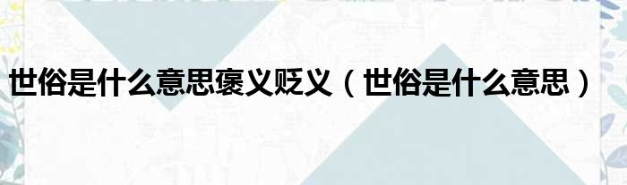 世俗是什么意思褒义贬义(世俗是什么意思)