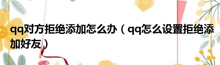 导读 大家好,今天小六子来为大家解答以下的问题,关于qq对方拒绝添加怎么办,qq怎么设置拒绝添加好友这个很多人还不知道,现在让我们一起来看看