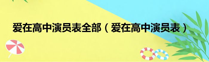 大家好,今天小六子来为大家解答以下的问题,关于爱在高中演员表全部,爱在高中演员表这个很多人还不知道,现在让我们一起来看看吧!
