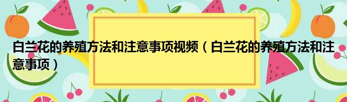 白兰花的养殖方法和注意事项视频(白兰花的养殖方法和注意事项)
