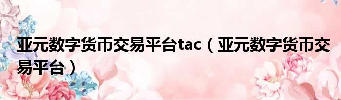 亚元数字货币交易平台tac(亚元数字货币交易平台)