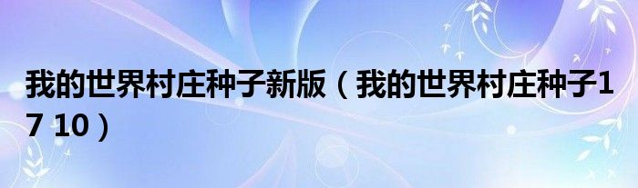 我的世界村庄种子新版(我的世界村庄种子1 7 10)