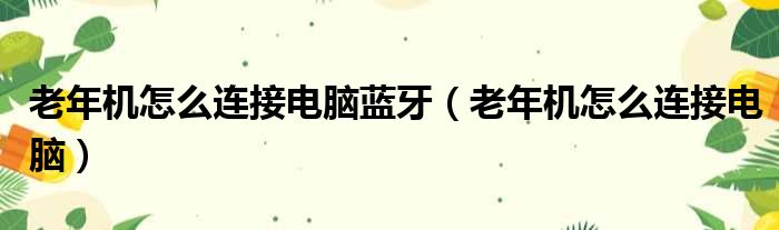 老年机怎么连接电脑蓝牙(老年机怎么连接电脑)