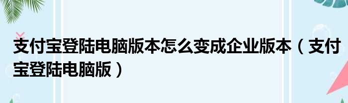 支付宝登陆电脑版本怎么变成企业版本(支付宝登陆电脑版)