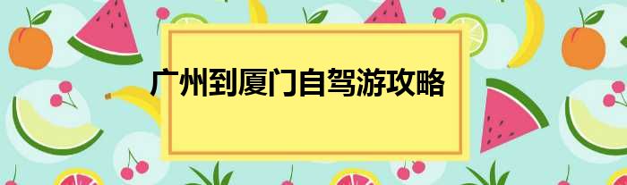 广州到厦门自驾游攻略