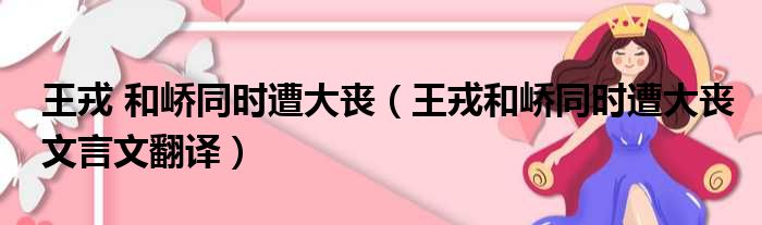 导读 大家好,今天小六子来为大家解答以下的问题,关于王戎 和峤同时遭大丧,王戎和峤同时遭大丧文言文翻译这个很多人还不知道,现在让我们一起