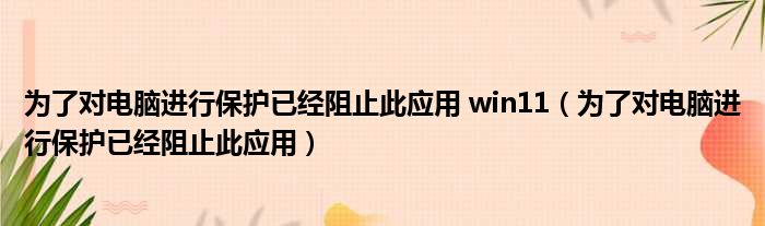为了对电脑进行保护已经阻止此应用 win11(为了对电脑进行保护已经阻止此应用)
