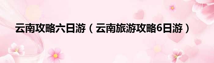 导读 大家好,今天小六子来为大家解答以下的问题,关于云南攻略六日游,云南旅游攻略6日游这个很多人还不知道,现在让我们一起来看看吧!1、我是