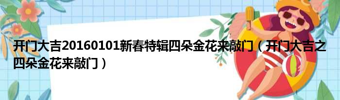 大家好,今天小六子来为大家解答以下的问题,关于开门大吉20160101新春特辑四朵金花来敲门,开门大吉之四朵金花来敲门这个很多人还不知道,现在让我们一起来看看吧!