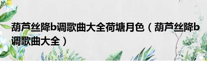 导读 大家好,今天小六子来为大家解答以下的问题,关于葫芦丝降b调歌曲大全荷塘月色,葫芦丝降b调歌曲大全这个很多人还不知道,现在让我们一起来