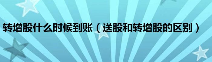 大家好,今天小六子来为大家解答以下的问题,关于转增股什么时候到账,送股和转增股的区别这个很多人还不知道,现在让我们一起来看看吧!