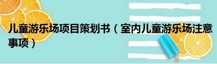 儿童游乐场项目策划书(室内儿童游乐场注意事项)