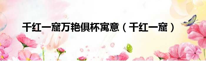 大家好,今天小六子来为大家解答以下的问题,关于千红一窟万艳俱杯寓意,千红一窟这个很多人还不知道,现在让我们一起来看看吧!