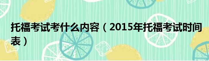 导读 大家好,今天小六子来为大家解答以下的问题,关于托福考试考什么内容,2015年托福考试时间表这个很多人还不知道,现在让我们一起来看看吧!1