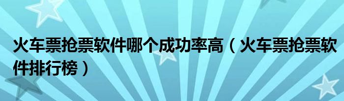 导读 大家好,今天小六子来为大家解答以下的问题,关于火车票抢票软件哪个成功率高,火车票抢票软件排行榜这个很多人还不知道,现在让我们一起来