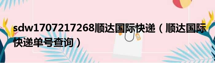 sdw1707217268顺达国际快递(顺达国际快递单号查询)