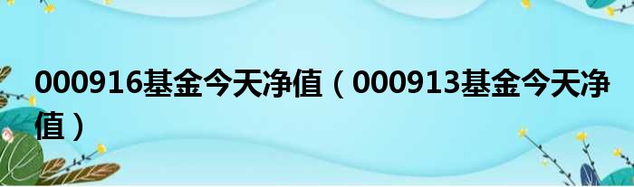 导读 大家好,今天小六子来为大家解答以下的问题,关于000916基金今天净值,000913基金今天净值这个很多人还不知道,现在让我们一起来看看吧!1、