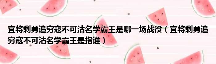 宜将剩勇追穷寇不可沽名学霸王是哪一场战役(宜将剩勇追穷寇不可沽名学霸王是指谁)