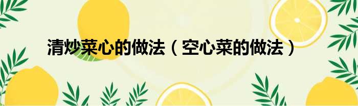 大家好,今天小六子来为大家解答以下的问题,关于清炒菜心的做法,空心菜的做法这个很多人还不知道,现在让我们一起来看看吧!