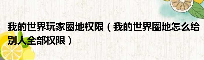 我的世界玩家圈地权限(我的世界圈地怎么给别人全部权限)