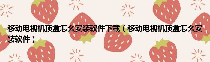 移动电视机顶盒怎么安装软件下载(移动电视机顶盒怎么安装软件)