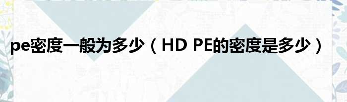 导读 大家好,今天小六子来为大家解答以下的问题,关于pe密度一般为多少,HD PE的密度是多少这个很多人还不知道,现在让我们一起来看看吧!1、这