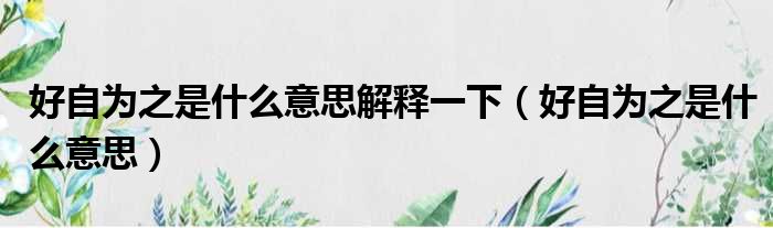 好自为之是什么意思解释一下(好自为之是什么意思)