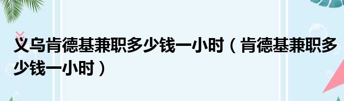 义乌肯德基兼职多少钱一小时(肯德基兼职多少钱一小时)