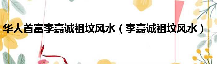 华人首富李嘉诚祖坟风水(李嘉诚祖坟风水)
