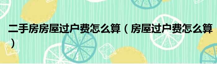 二手房房屋过户费怎么算(房屋过户费怎么算)