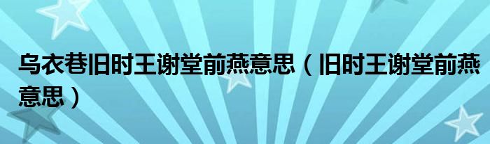 乌衣巷旧时王谢堂前燕意思(旧时王谢堂前燕意思)