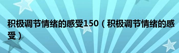 大家好,今天小六子来为大家解答以下的问题,关于积极调节情绪的感受150,积极调节情绪的感受这个很多人还不知道,现在让我们一起来看看吧!