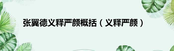 导读 大家好,今天小六子来为大家解答以下的问题,关于张翼德义释严颜概括,义释严颜这个很多人还不知道,现在让我们一起来看看吧!1、“义释严颜