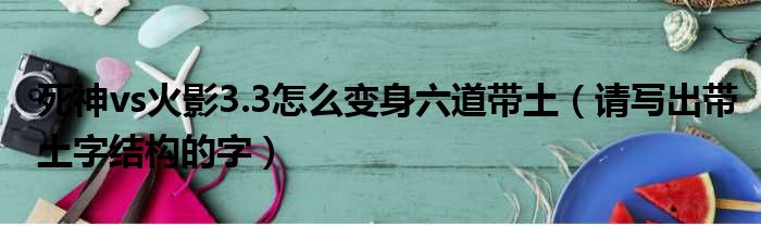 大家好,今天小六子来为大家解答以下的问题,关于死神vs火影3.3怎么变身六道带土,请写出带土字结构的字这个很多人还不知道,现在让我们一起来看看吧!