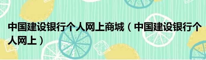 中国建设银行个人网上商城(中国建设银行个人网上)